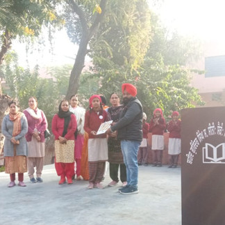 She was honoured with EBC badge by Smt. Meenu Sharma (Computer Faculty) under the guidance of Principal S. Gurdip Singh. S. Gursharan Singh (Science Master) awarded her with a register and a pen.